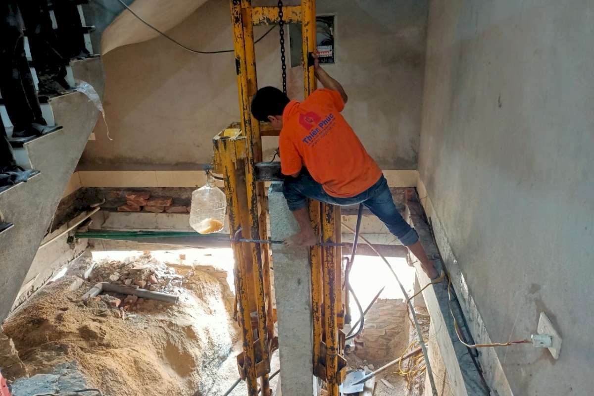 Ngoài ra, công ty còn tiến hành chỉnh nghiêng và nâng nhà. Việc này không chỉ giúp cải thiện hình thức của công trình mà còn tạo ra không gian sống thoáng đãng hơn cho người dân. Công trình sau khi được chỉnh nghiêng và nâng lên sẽ có hình dáng đẹp mắt hơn, tạo nên một không gian sống lý tưởng cho gia đình.