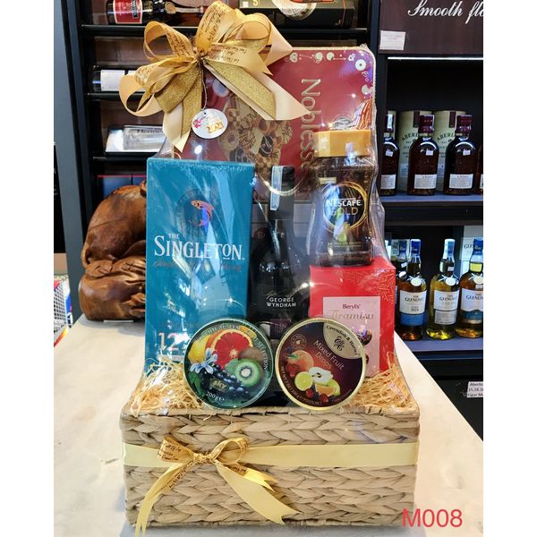 M008 - Giỏ quà đan lát thủ công cao cấp Tết 2022, rượu Singleton cao cấp