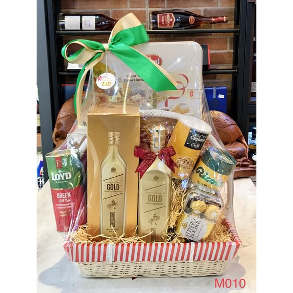 M010 - Giỏ quà đan lát thủ công cao cấp Tết 2022, rượu Gold Labed cao cấp