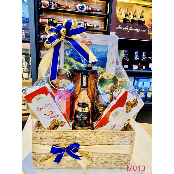 M013 - Giỏ quà đan lát thủ công cao cấp Tết 2022, rượu Hennessy cao cấp