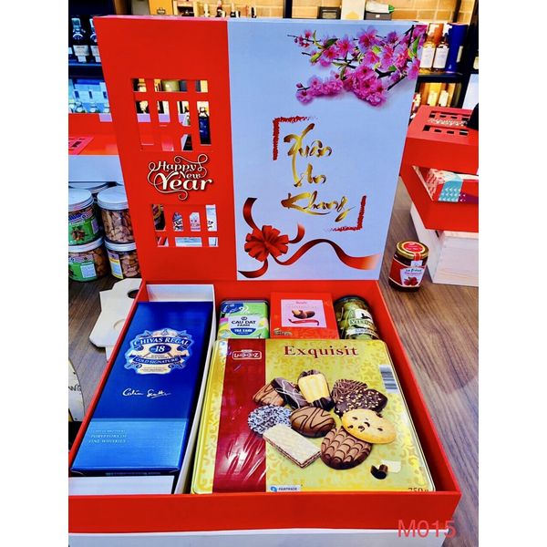M015 - Hộp quà cao cấp Tết 2022, rượu Chivas 18 cao cấp
