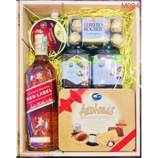 M024 - Hộp quà gỗ cao cấp Tết 2022, rượu Red Labed cao cấp